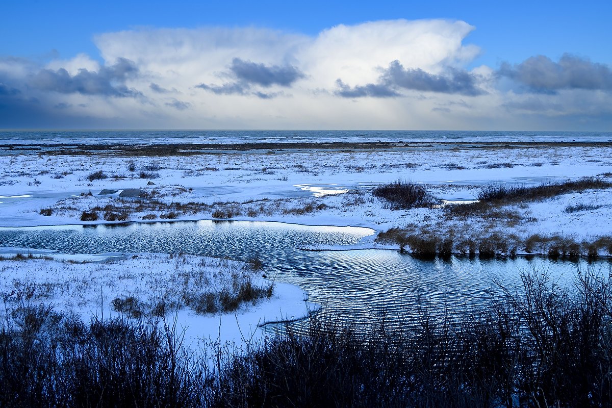 One of the best parts of having the afternoon to tour Churchill was that it allowed us to get out of the van and make photos at ground level, which we wouldn’t be able to once on the tundra (where we’d always be up high out of reach of ). Like this photo showing marshes on the shore of Hudson Bay. Nikon Z8, Aperture Priority, Sunny white balance, ISO 100, 1/200 at f/11 in Matrix metering, -1.3 EV, Nikkor Z 28-400mm f/4-8 VR lens at 43mm.