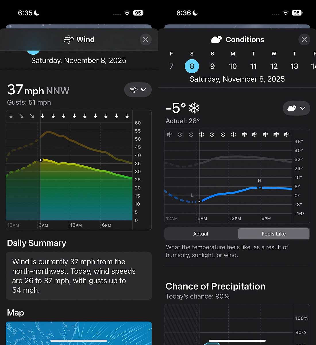 We had internet at the lodge, so I could see just how cold it was going to be on our first day there!