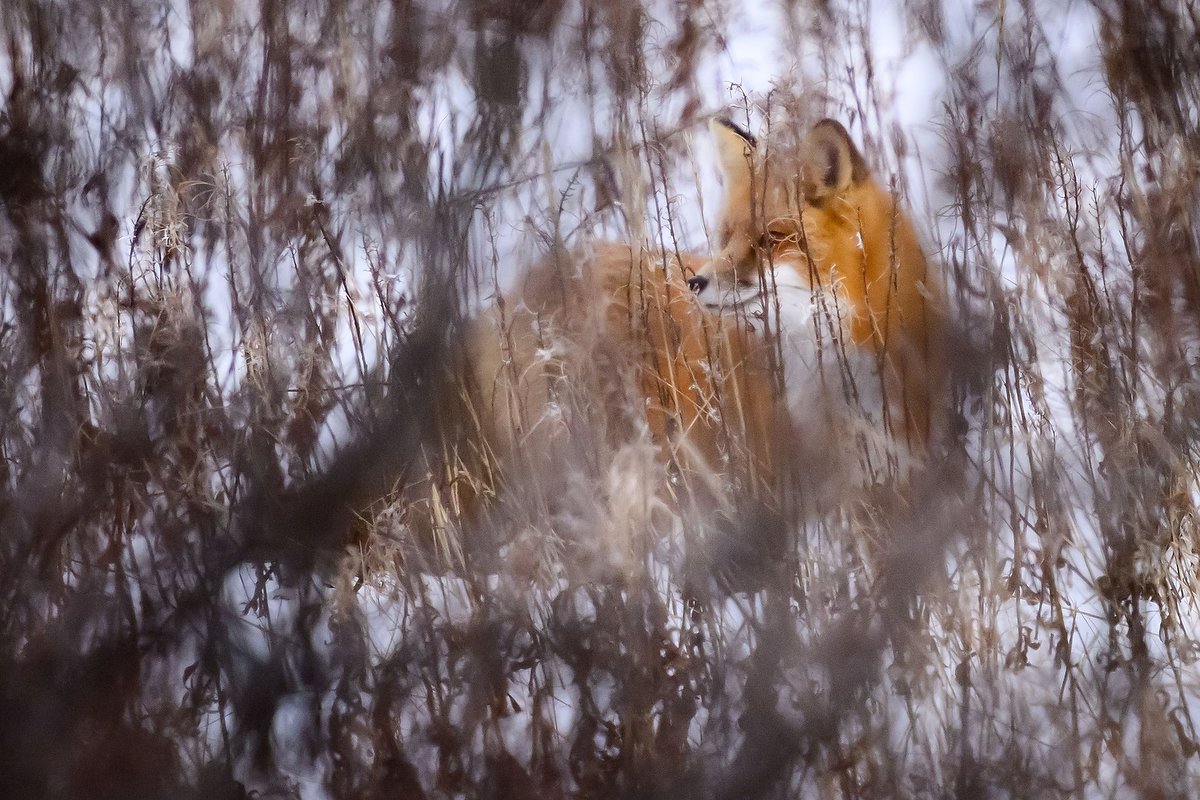 While polar bears are the big draw, there’s other wildlife as well, like this cross fox we watched hunt. Nikon Z8, Manual exposure with Auto ISO, Auto white balance, ISO 2800, 1/800 at f/5.6 in Matrix metering, +0.3 EV, Nikkor Z 400mm f/2.8 TC lens with 2X teleconverter for a total of 800mm.[/caption]