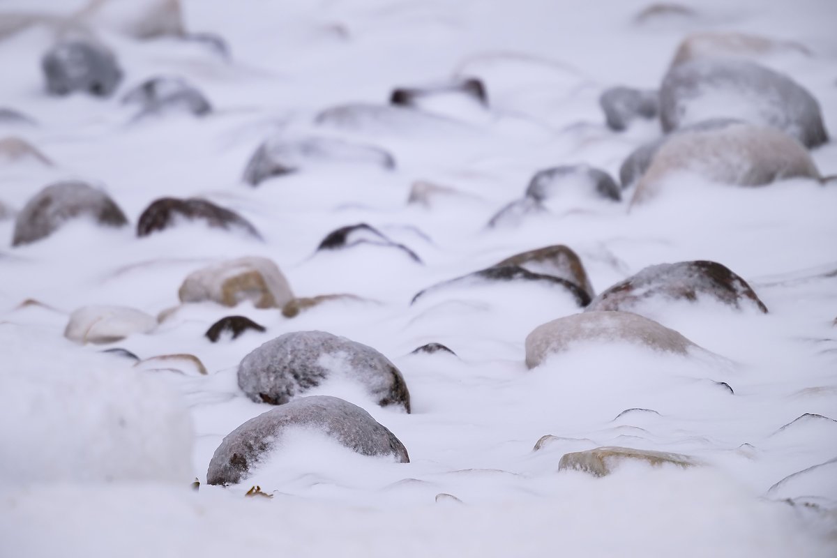 Again, bears are the draw, but there are other interesting photos to be made as well, like these frost-covered rocks along the shore. Nikon Z8, Manual exposure with Auto ISO, Natural Auto white balance, ISO 360, 1/640 at f/5.6 in Matrix metering, +1.3 EV, Nikkor Z 400mm f/2.8 TC VR S with 2X teleconverter for 800mm.