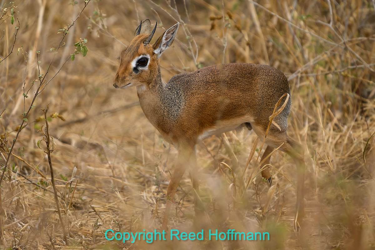 A dik-dik, the smallest of the antelope family, tries to hide by standing still. Not even 18-inches tall, they’re shockingly tiny. Nikon Z 8, Manual exposure with Auto ISO, Sunny white balance,, ISO 800, 1/800 at f/6.3 in Matrix metering, +0.3 EV, Nikkor Z 180-600mm f/5.6-6.3 VR lens at 600mm.
