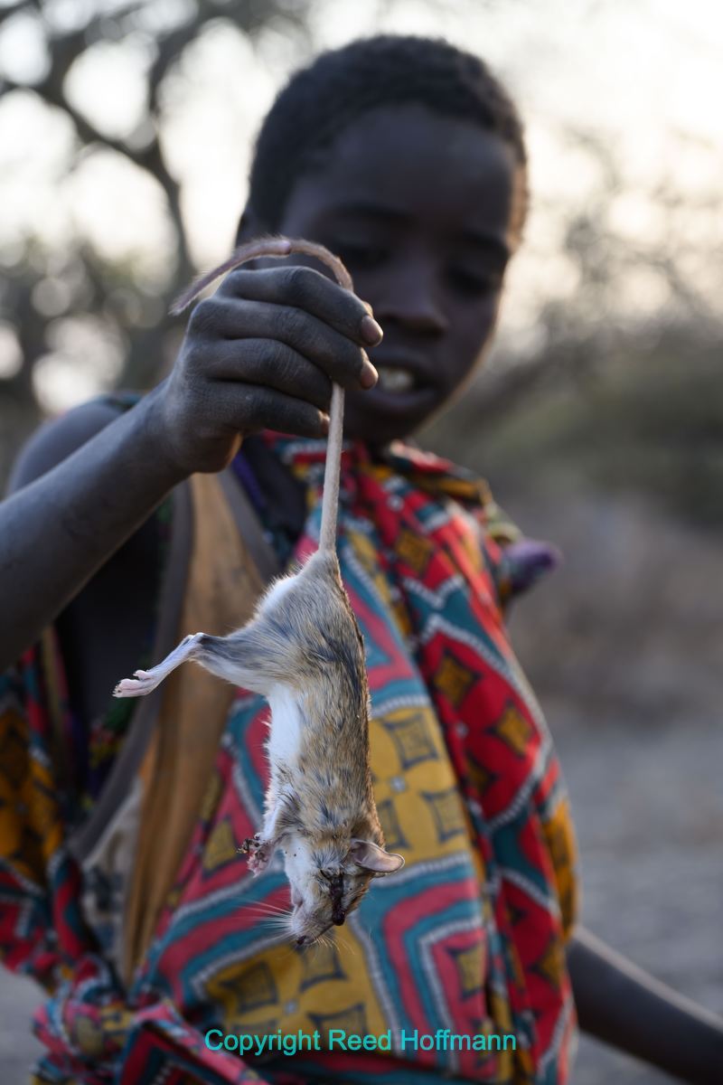 A young Hadzabe shows off a mouse he’d just shot with an arrow. A few minutes later it had been cooked and we were offered some. Tasted like, well, chicken. Nikon Z 8, Manual exposure with Auto ISO, Sunny white balance, ISO 640, 1/320 at f/6.3 in Matrix metering, 0.0 EV, Nikkor Z 24-200mm f/4-6.3 VR lens at 82mm.
