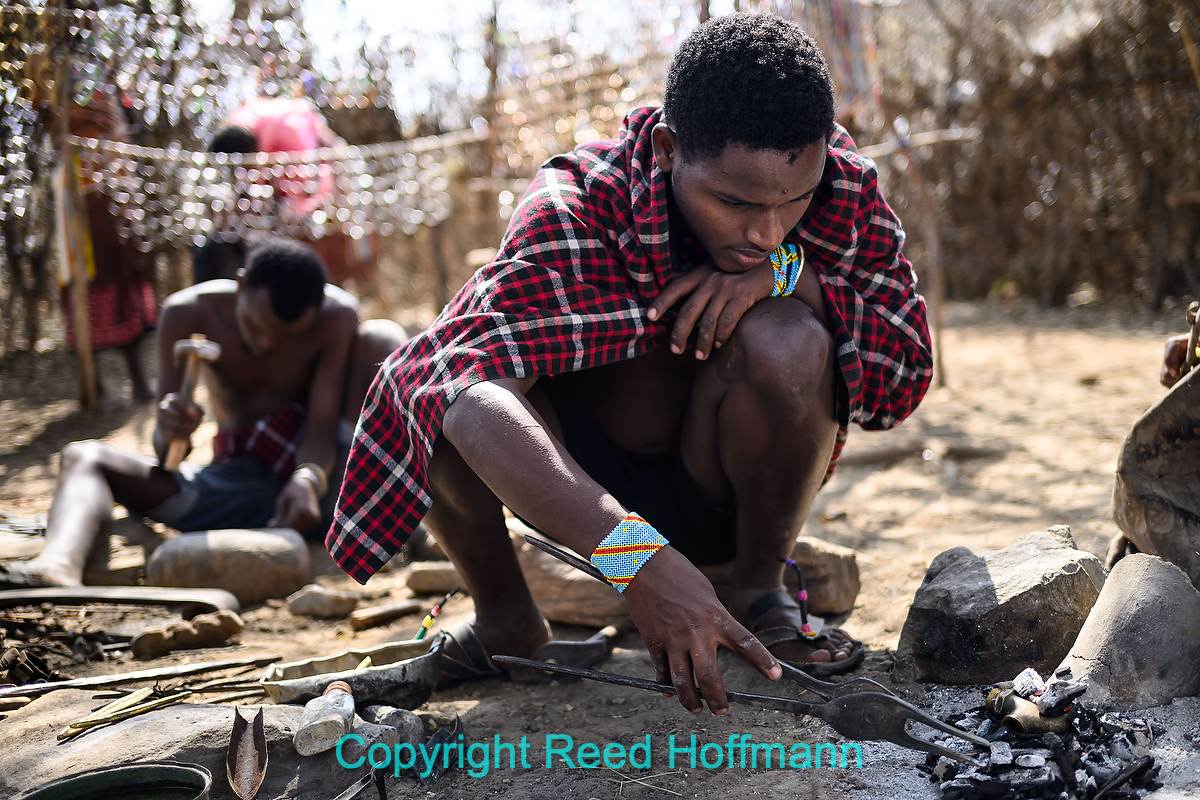 We watched Datoga men melt copper and then fashion it into jewelry and arrowheads. Nikon Z 8, Manual exposure with Auto ISO, Sunny white balance, ISO 90, 1/320 at f/2 in Matrix metering, +0.7 EV, Nikkor Z 40mm f/2 lens at 40mm.