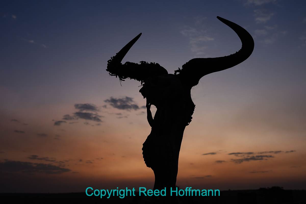 Twenty percent of the wildebeest in the migration don’t make it, and reminders of that are everywhere. This skull was mounted on a post at the parking area of our camp. Nikon Z6III, Aperture Priority, Sunny white balance, ISO 320, 1/30 at f/8 in Matrix metering, -1.0 EV, Nikkor = Z 24-200mm f/4-6.3 VR lens at 29mm.
