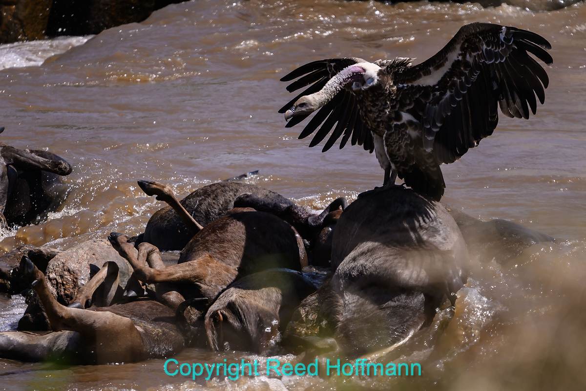Downriver from the crossing areas you’ll see piles of drowned wildebeest, and vultures staking out their next meal. Nikon Z 8, Manual exposure with Auto ISO, Sunny white balance, ISO 500, 1/2000 at f/6.3 in Matrix metering, -0.3 EV, Nikkor Z 180-600mm f/5.6-6.3 VR lens at 600mm.