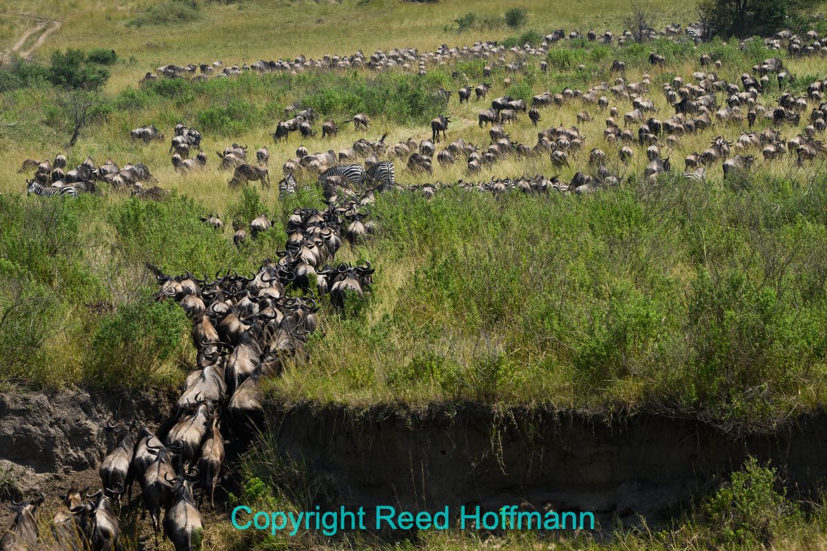 For the wildebeest and zebra that make a successful crossing, their journey continues north into Kenya. Nikon Z 8, Manual exposure with Auto ISO, Sunny white balance, ISO 320, 1/400 at f/10 in Matrix metering, -0.3 EV, Nikkor Z 180-600mm f/5.6-6.3 VR lens at 180mm.