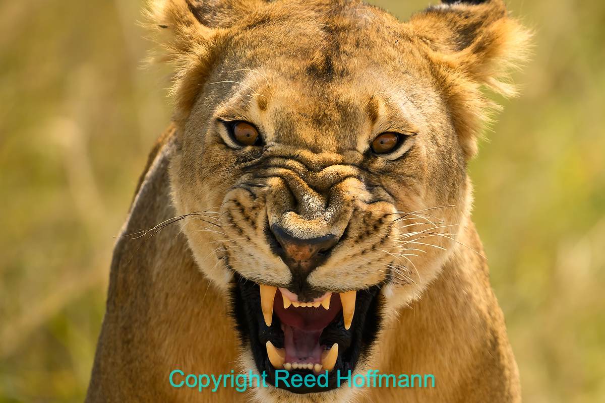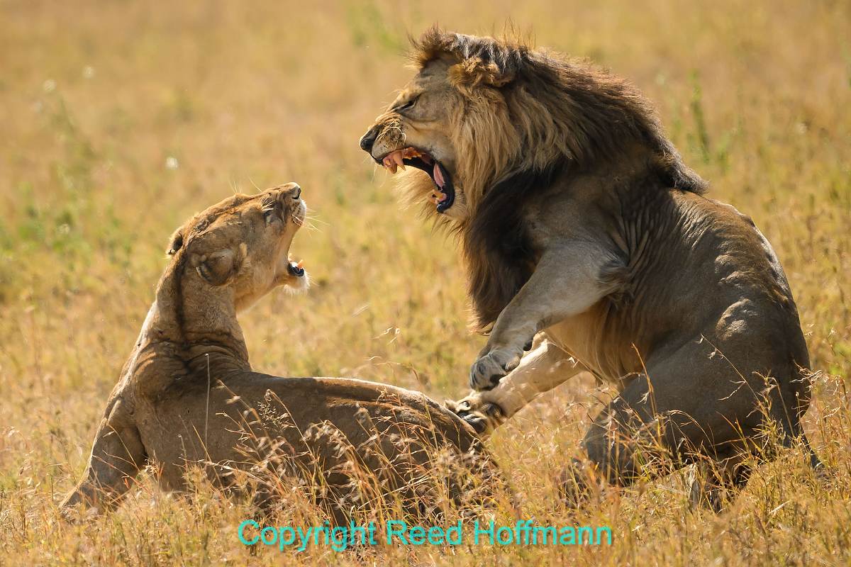 In a pride of lions, the females work together, both hunting and raising cubs. The male’s job is to patrol the perimeter of their territory to keep other lions out. So when you find a male with a single female. they’re “on honeymoon.” That means they’ll mate about every twenty-minutes. Well worth waiting for the action, like this at the end of a session. Nikon Z 8, Manual exposure with Auto ISO, Cloudy white balance (to bring out the golden grass), ISO 640, 1/1600 at f/6.3 in Matrix metering, 0.0 EV, Nikkor Z 180-600mm f/5.6-6.3 VR lens at 600mm.