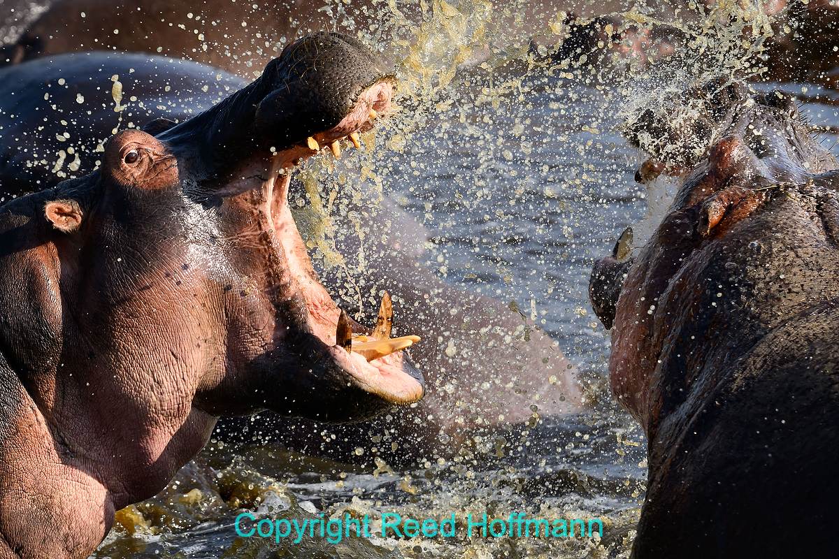 While you can find hippos wherever there’s water in the Serengeti, there’s one place that’s actually called the “hippo pool,” because dozens of them gather there each day. You can often see a crocodile or two nearby as well, but in this case one of the hippos chased it off. The crocs aren’t a threat to the hippos, but I suppose the hippos just like to have the pool to themselves. Nikon Z 8, Manual exposure with Auto ISO, Sunny white balance, ISO 800, 1/1600 at f/6.3 in Matrix metering, -0.3 EV, Nikkor NIKKOR Z 180-600mm f/5.6-6.3 VR lens at 600mm.