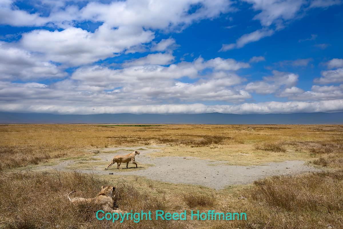 We found another pair of lions “on honeymoon” in the crater, but then she took an interest in a family of warthogs passing through. He’ll just have to wait. Nikon Z6III, Manual exposure with Auto ISO, Sunny white balance, ISO 100, 1/400 at f/10 in Matrix metering, +0.3 EV, Nikkor Z 24-200mm f/4-6.3 VR lens at 24mm.