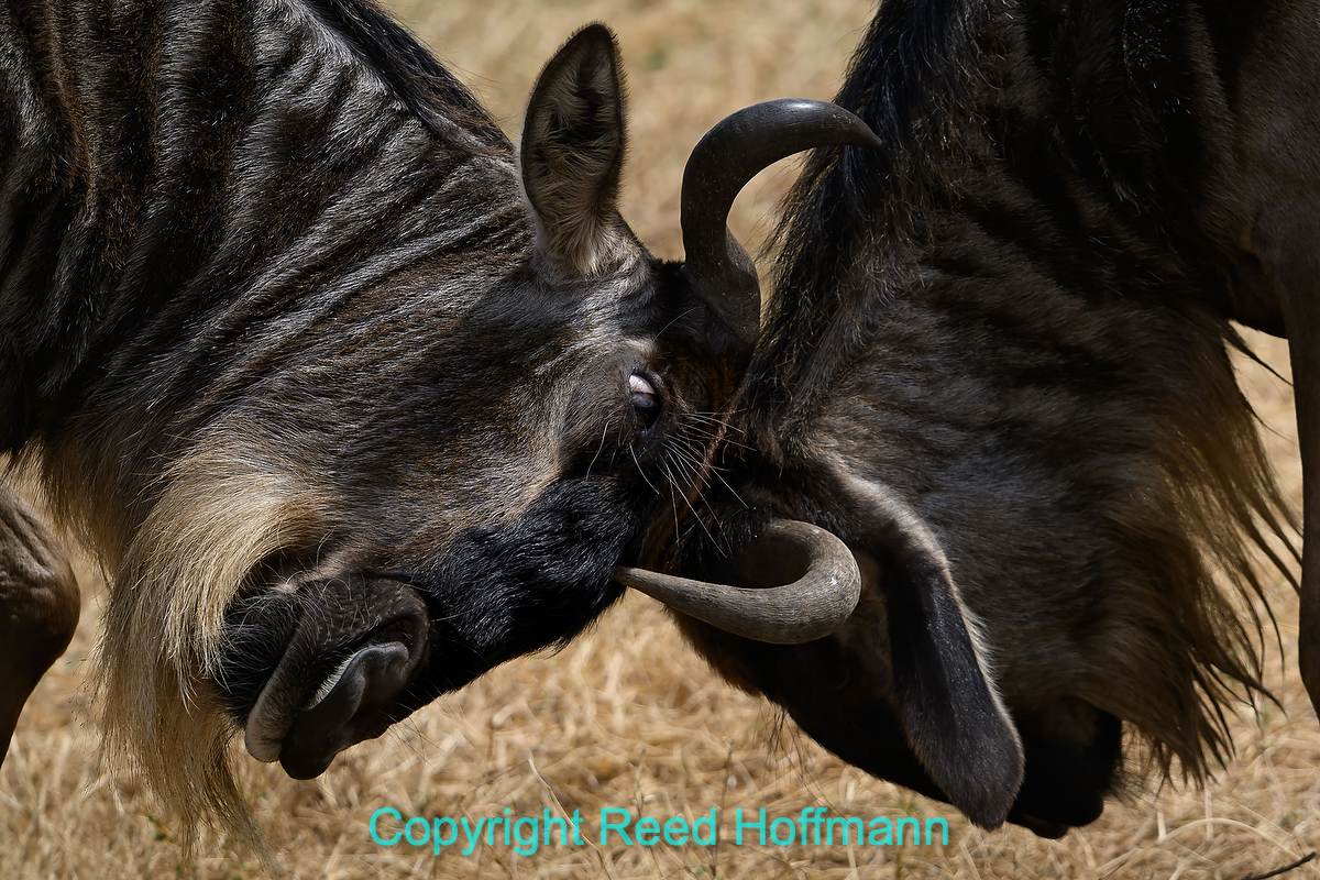 We parked and ate our box lunches surrounded by a herd of wildebeest. This pair was finding out who was the strongest. Nikon Z 8, Manual exposure with Auto ISO, Sunny white balance, ISO 400, 1/1600 at f/5.6 in Matrix metering, -0.7 EV, Nikkor Z 180-600mm f/5.6-6.3 VR lens at 280mm.