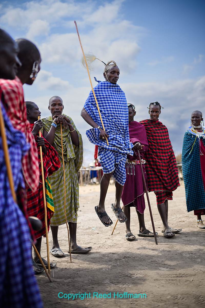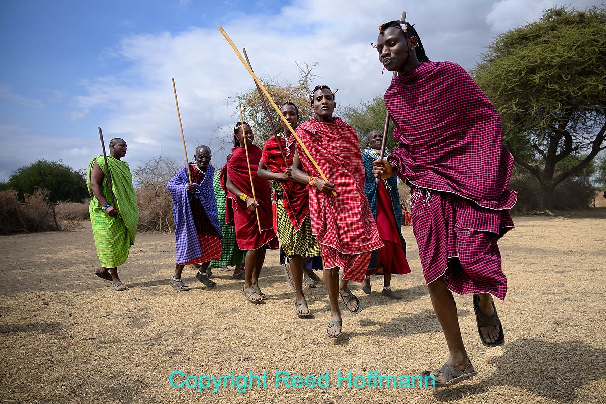 A Maasai visit always begins with a welcoming song and dance. Nikon Z 8, Manual exposure with Auto ISO, Sunny white balance, ISO 100, 1/1000 at f/4 in Matrix metering, 0.0 EV, Nikkor Z 24-200mm f/4-6.3 VR lens at 24mm.